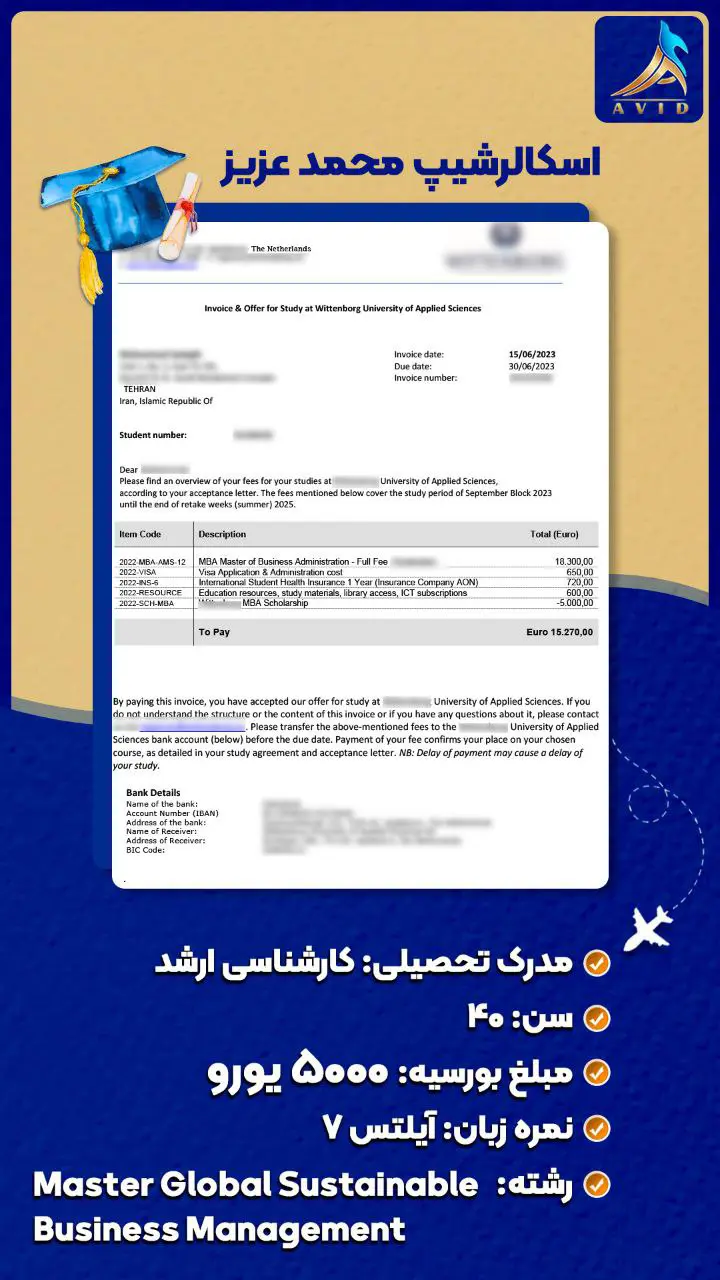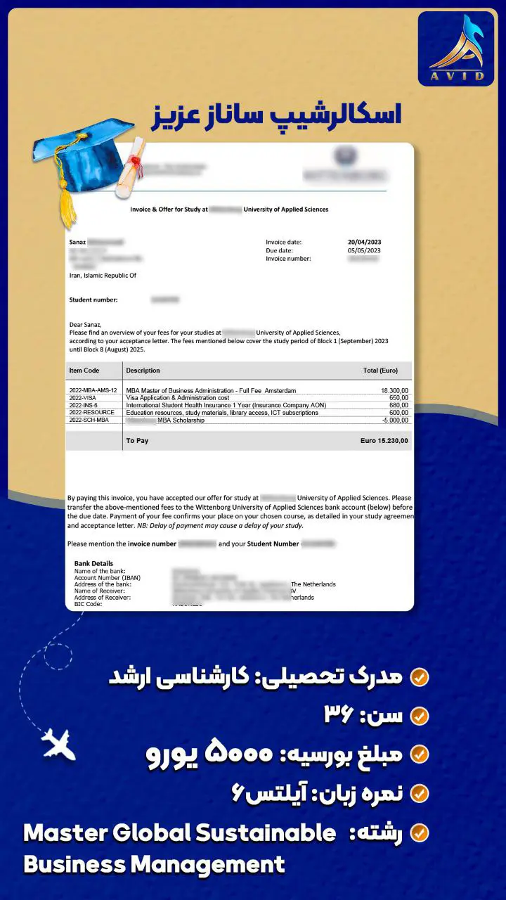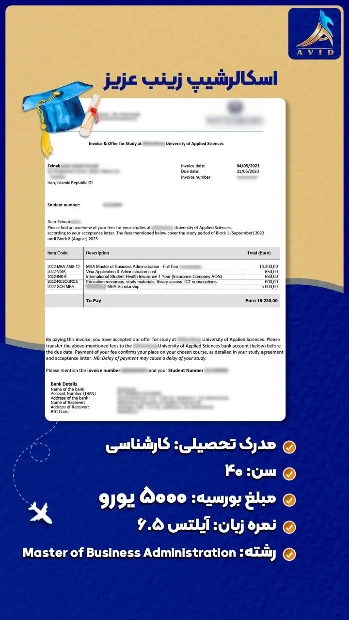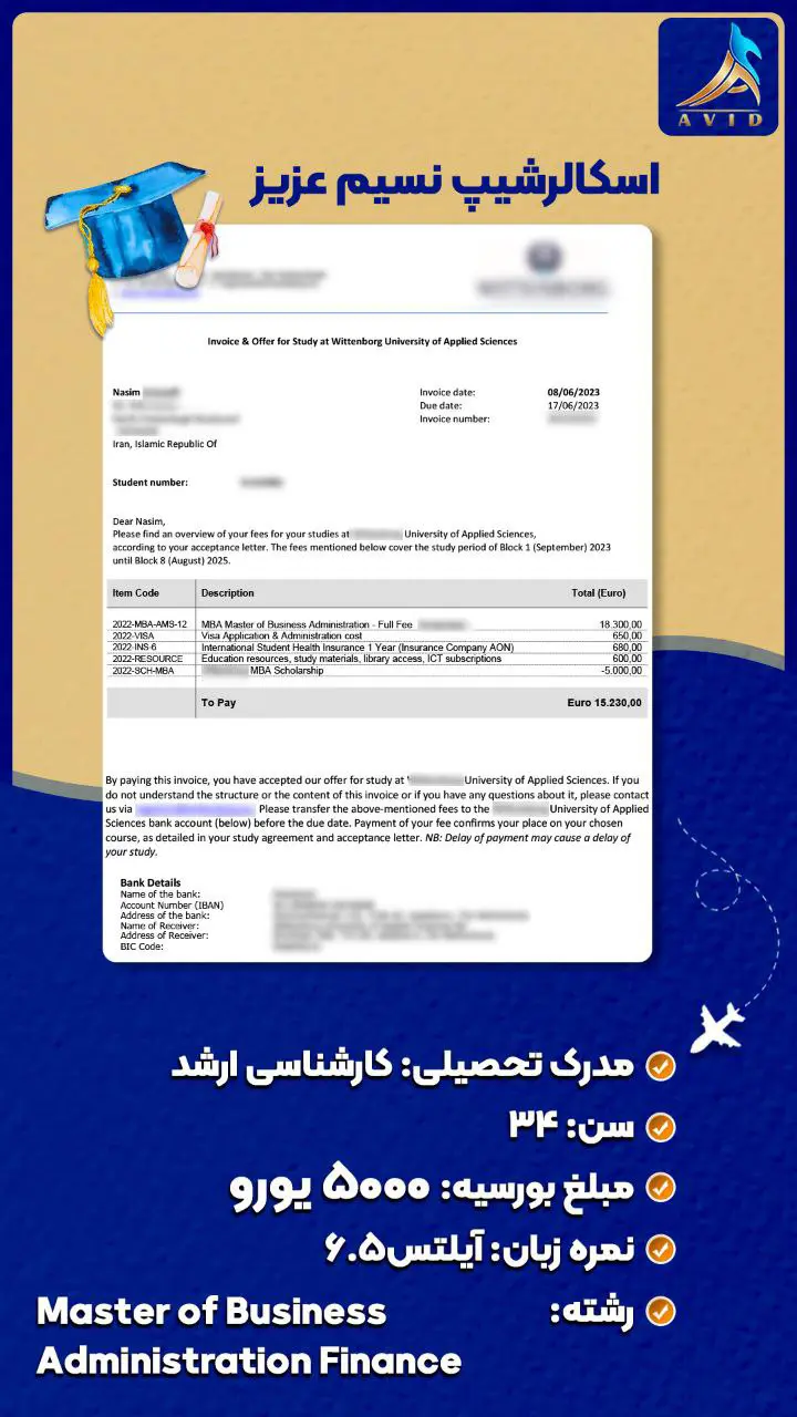 گروه مهاجرتی آوید با سابقه درخشان در زمینه مهاجرت تحصیلی و کاری به کشورهای مختلف، مفتخر است که با ارائه خدمات مشاوره تخصصی و همراهی متعهدانه در تمامی مراحل مهاجرت، در کنار شما باشد. ما با اتکا به دانش و تجربه تیم مجرب خود، پرونده های مهاجرتی متعددی را با موفقیت به سرانجام رسانده ایم و راه را برای متقاضیان عزیز جهت رسیدن به اهدافشان هموار کرده ایم. در این راستا، ما مفتخریم که به اطلاع شما برسانیم، گروه مهاجرتی آوید در زمینه دریافت انواع ویزا و بورسیه تحصیلی از دانشگاه های معتبر در سراسر جهان، سابقه ای درخشان دارد. ما با تسلط بر قوانین و الزامات مهاجرتی کشورهای مختلف، و همچنین با شناخت دقیق از معیارهای پذیرش دانشگاه ها و موسسات آموزشی، شانس موفقیت شما را در اخذ ویزا و بورسیه تحصیلی به طور قابل توجهی افزایش می دهیم.